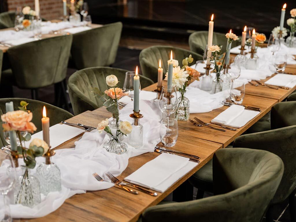 Voor de culinaire invulling van de avond zijn jullie bij Fletcher Hotel-Restaurant De Reiskoffer ook zeker aan het juiste adres! Vier jullie huwelijksdiner in Brasserie Louis, dé culinaire hotspot van Bosschenhoofd. Of ga voor een romantisch diner aan mooie lange tafels in onze kapel. In overleg met jullie stelt onze keukenbrigade een overheerlijk diner samen. Of het nu gaat om een 3-gangen diner of een walking diner, alles is mogelijk!